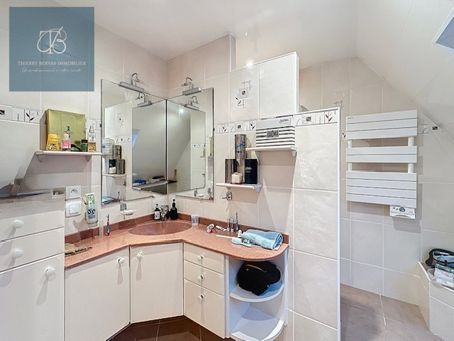 Le premier étage se compose d’un dégagement menant à trois chambres, un bureau, une salle d’eau et un WC.