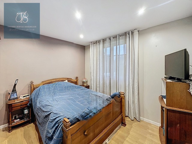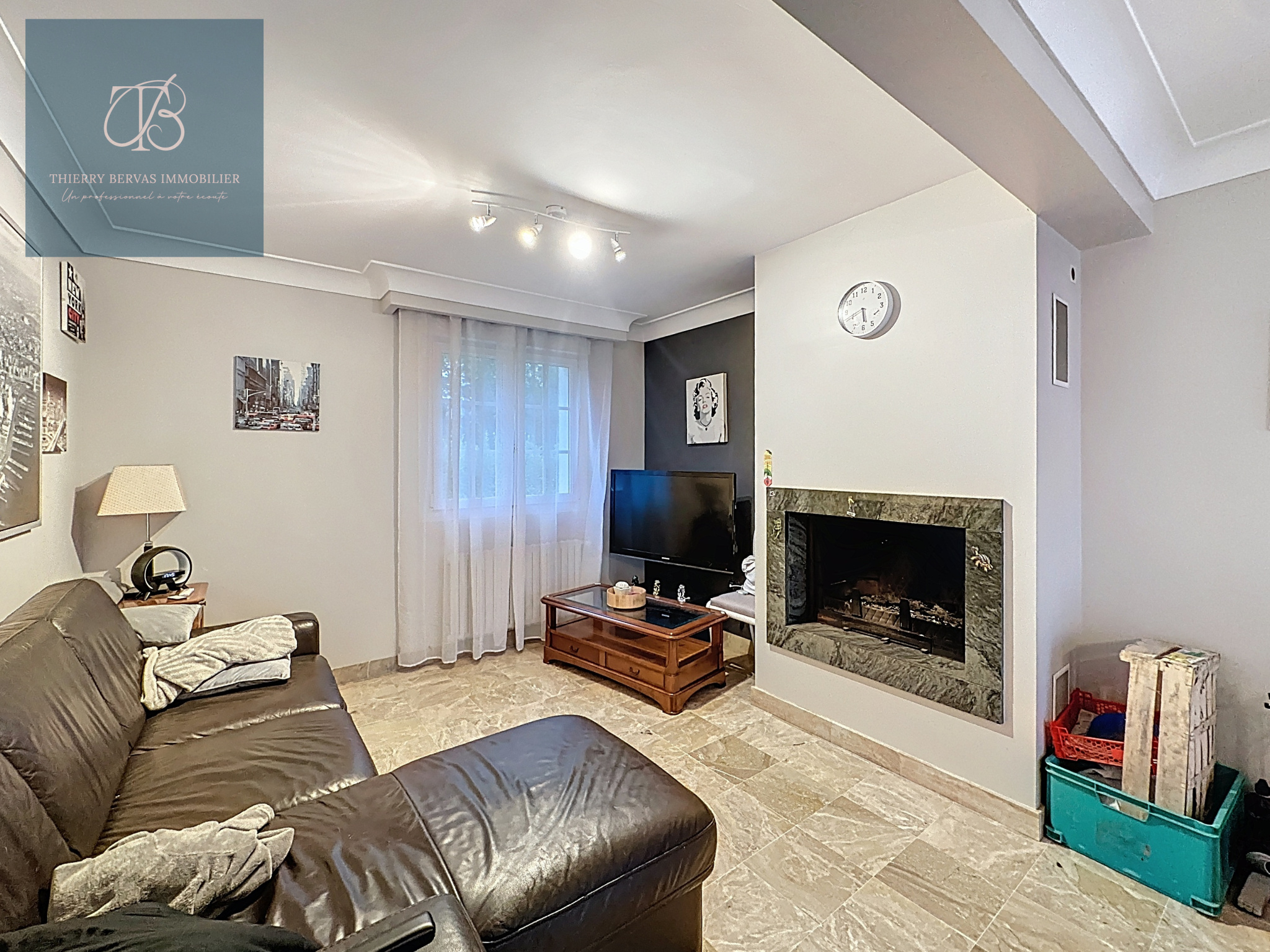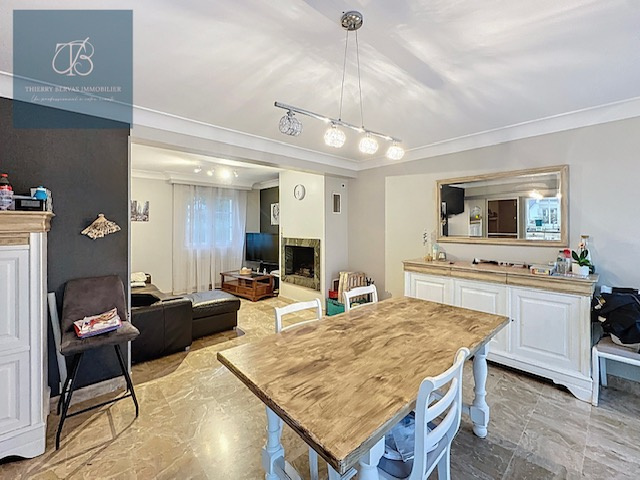 Au rez-de-chaussée, un hall d’entrée distribue une cuisine indépendante, aménagée et semi équipée, ainsi qu’un salon-séjour doté d’une cheminée à insert et ouvrant sur un balcon. Ce niveau comprend également une chambre et un WC indépendant.