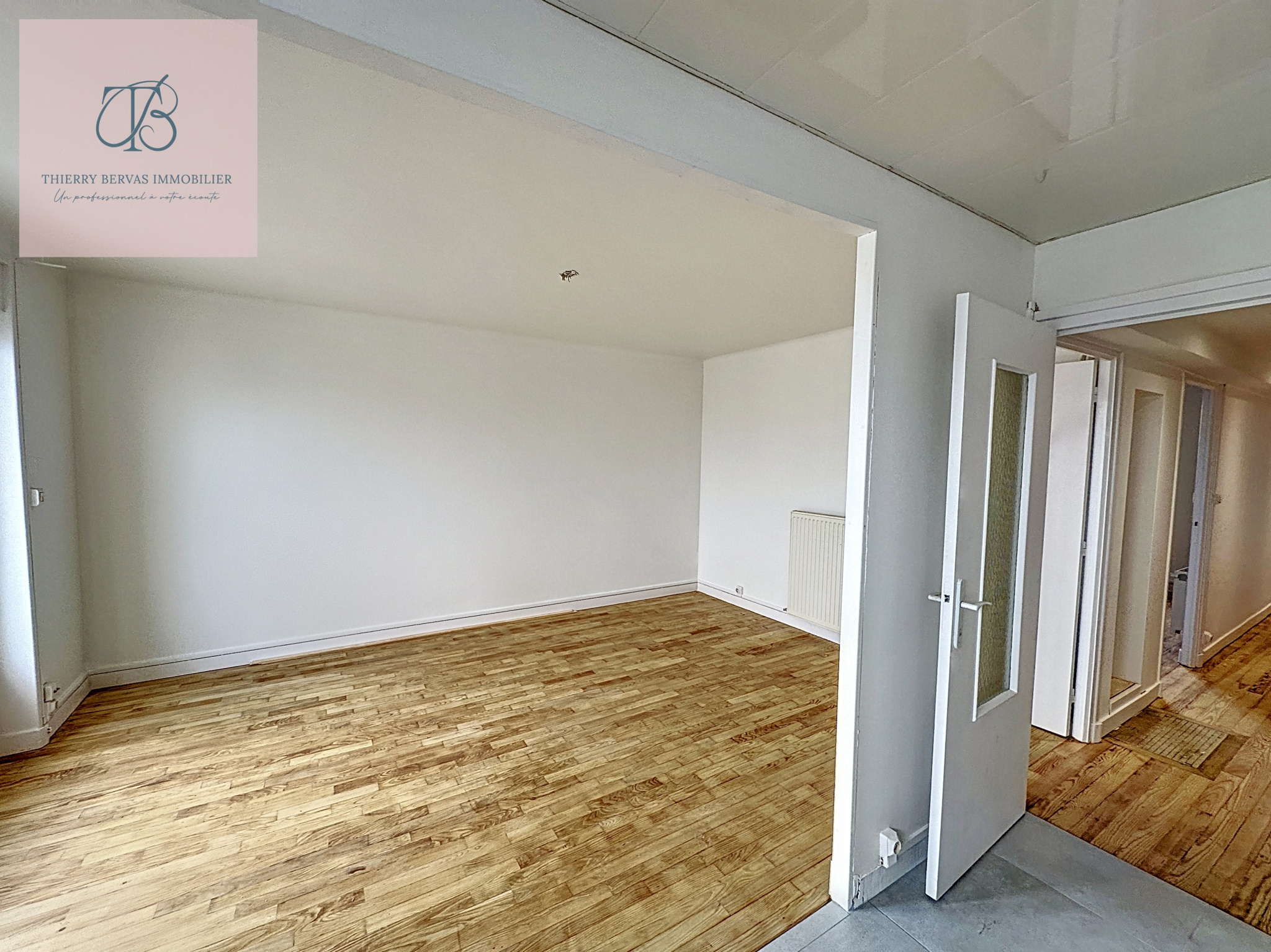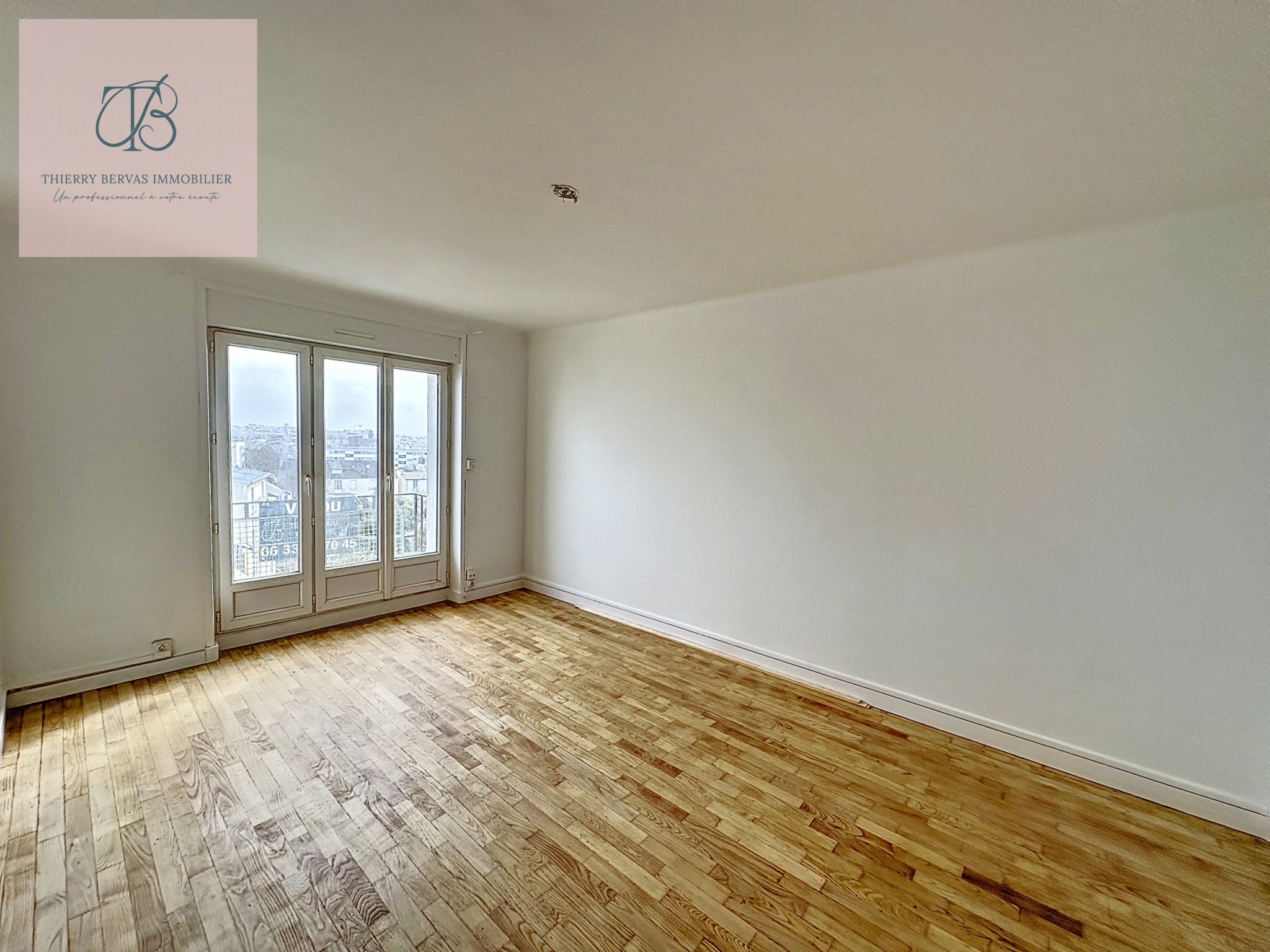 Cet appartement lumineux comprend un salon séjour donnant sur un balcon, un espace cuisine à aménager , un couloir desservant deux chambres, une salle d’eau et WC.