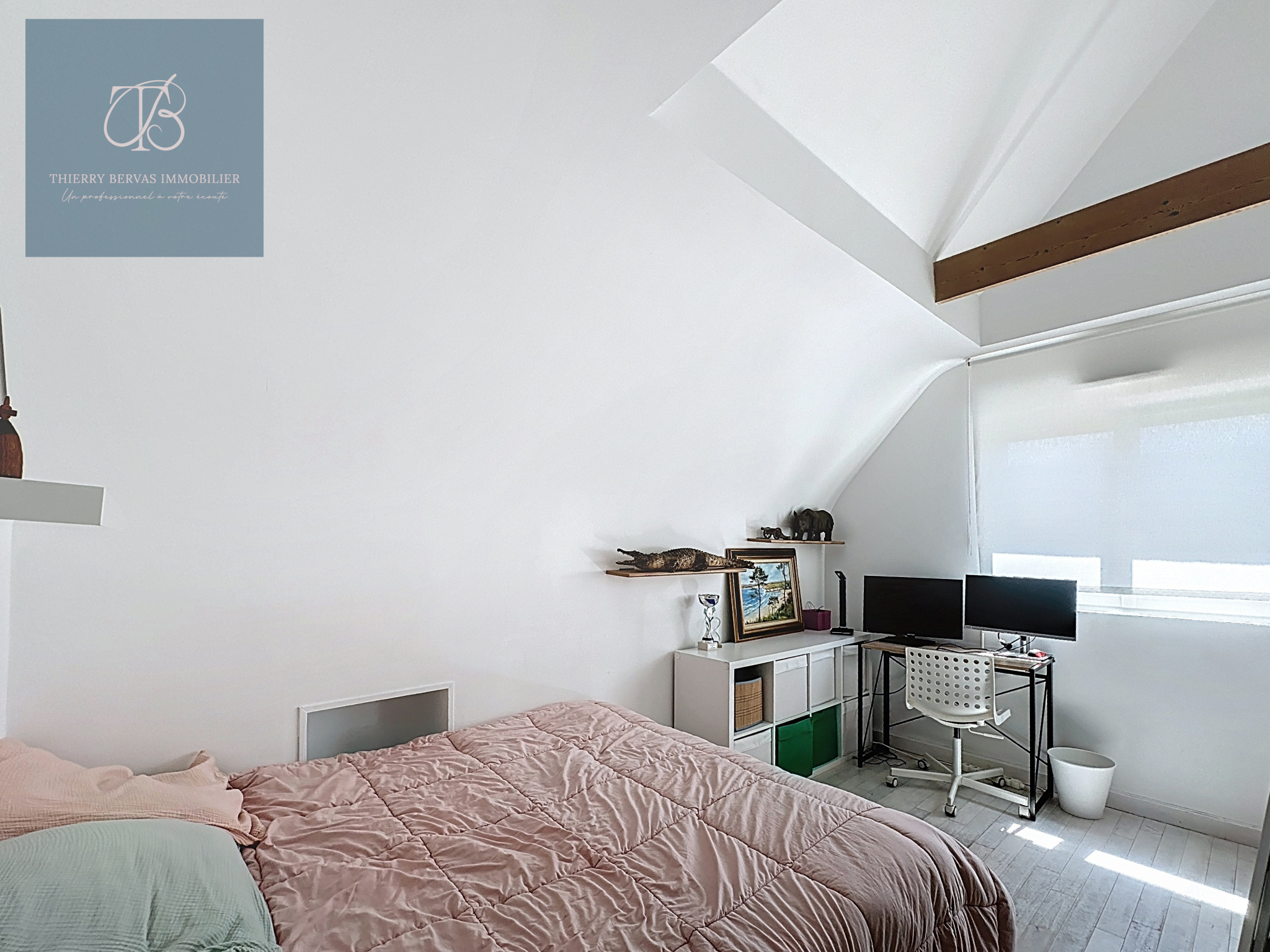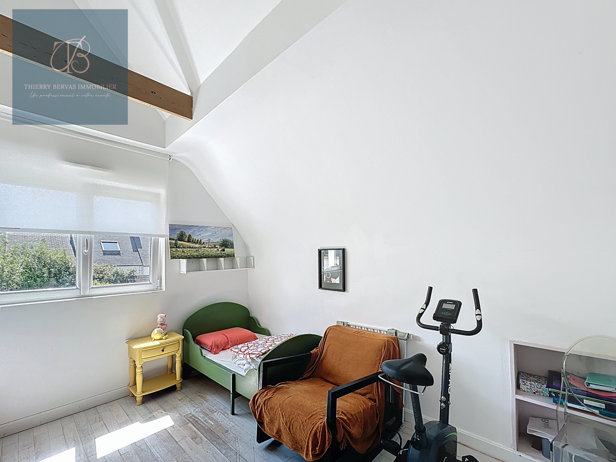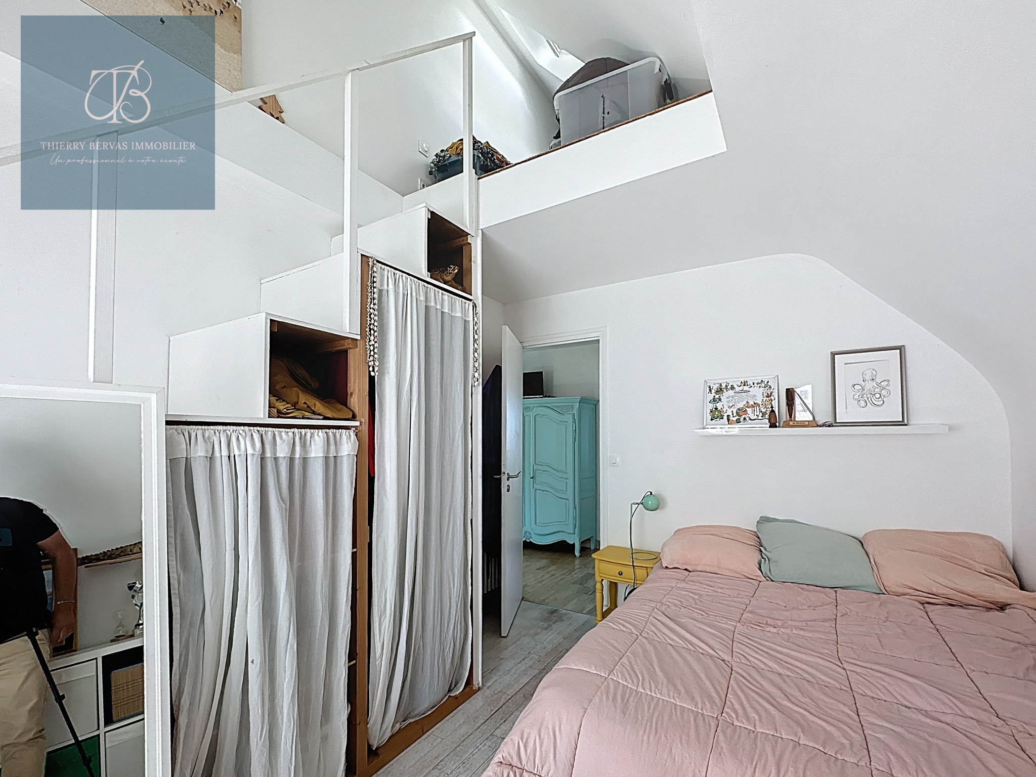 À l’étage, un palier dessert trois chambres, dont deux avec mezzanine, parfaites pour accueillir enfants, amis ou créer des espaces de travail. Une salle d’eau et un WC indépendant complètent ce niveau.